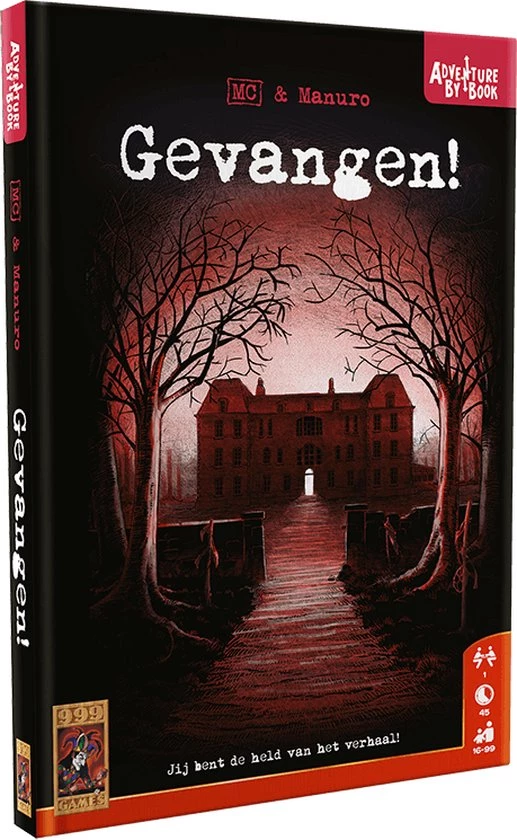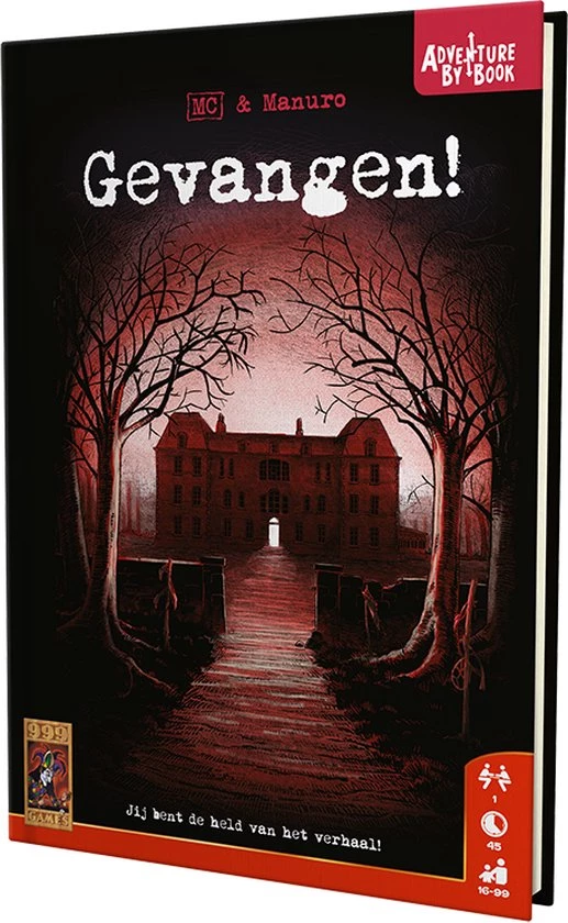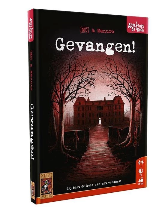 In de Adventure by Book-serie bepalen jouw keuzes hoe het verhaal zich voortzet. Elk stripboek is een eigen verhaal op zich. In de plaatjes zijn cijfers verstopt die de opties weergeven die jouw personage kan nemen. Onderweg zul je puzzels oplossen, voorwerpen verzamelen en gevaren ontwijken om het best mogelijke verhaal te vertellen. Hierbij zijn er meerdere routes beschikbaar voordat je het einddoel behaalt. Na 1 x spelen ben je dus nog lang niet klaar. En bovendien zal je, net als in ieder ander spel wanneer je de verkeerde keuzes maakt, verliezen en opnieuw moeten beginnen. ‘Gevangen!’ is een razendspannende thriller voor spelers met stalen zenuwen. Je dochter is ontvoerd en alleen jij kan haar redden. In een geheimzinnig landhuis moet je de juiste keuzes maken om de kidnappers te slim af te zijn en haar in veiligheid te brengen. Wees wel op je hoede, want niets is wat het lijkt en de tijd dringt!