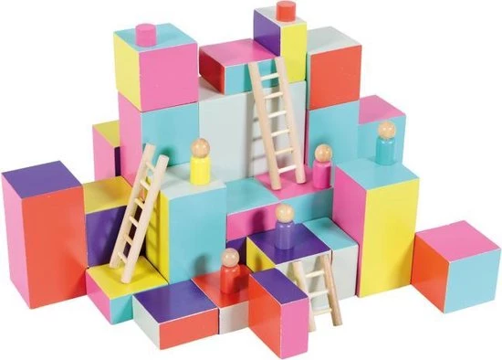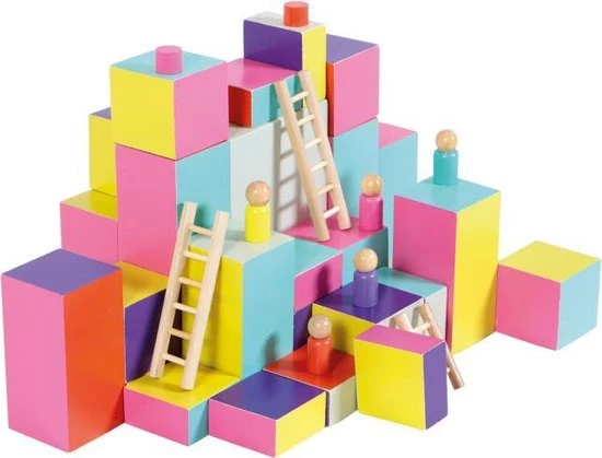 | Verpakkingsinhoud | Inhoud:, 2, neutrale, blokken, 33, gekleurde, blokken, 5, klimmers, 5, blokkeerschijven, 5, korte, ladders, 5, lange, ladders, De, spelregels |