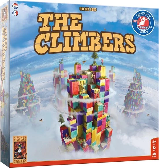 Tactisch driedimensionaal spel. In dit eenvoudig te leren tactische spel probeer je als eerste het hoogste punt te bereiken. De 35 gekleurde houten blokken van verschillend formaat worden willekeurig neergezet, waardoor elk spel anders is. Je mag echter uitsluitend op blokken van je eigen kleur en neutrale blokken klimmen. Ladders en blokkeerstenen kunnen gebruikt worden om moeilijke situaties te overwinnen, maar kunnen per spel slechts ??n keer worden ingezet. Klim jij het hoogst? The Climbers is geschikt voor zowel beginnende als gevorderde spelers.