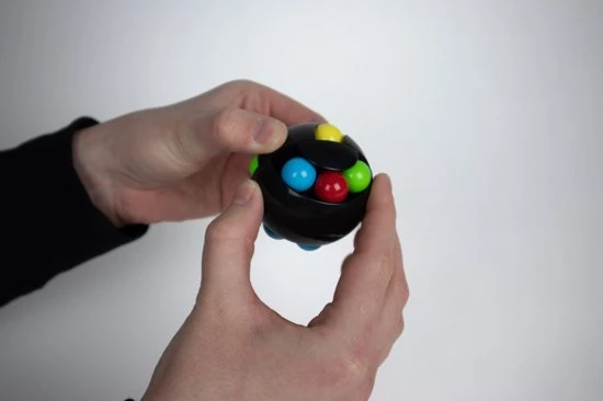 Door het halfronde gedeelte te draaien en de kleine gekleurde bal te verschuiven, zorgt de Magic Spin Ball ervoor dat de kleur van de kleine gekleurde bal op en neer gaat om de oorspronkelijke staat te herstellen.