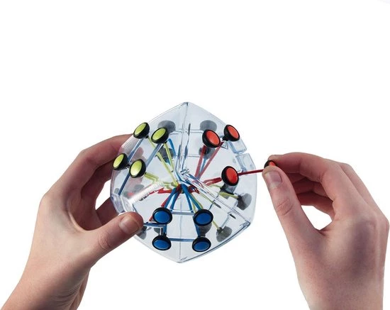 Een hersenkraker voor de echte puzzelfanaat! Probeer aan elke kant vier knoppen met verschillende kleuren te plaatsen. De knoppen zijn verbonden met elastische draden, waardoor het moeilijk is om de knoppen te plaatsen zonder dat de draden verstrikt raken. Een knoop maken is makkelijk, maar kun je de Brainstring Original ook weer uit de knoop halen..?