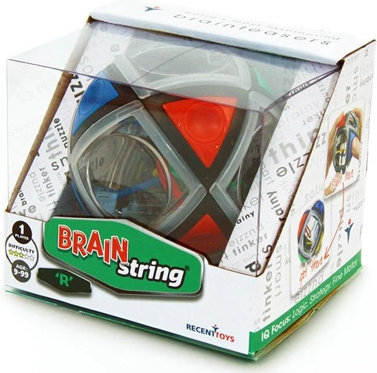 De populaire Brainstring is binnenstebuiten gekeerd! Brainstring ‘R’ is net zo uitdagend als het origineel, maar heeft een beweegbare bal met een draai van 360 graden die aan de touwtjes trekt. Draai, draai, strek en schuif de puzzel in alle richtingen om de stevige knoop te ontrafelen. Zodra de draden volledig gescheiden zijn, is de puzzel opgelost.