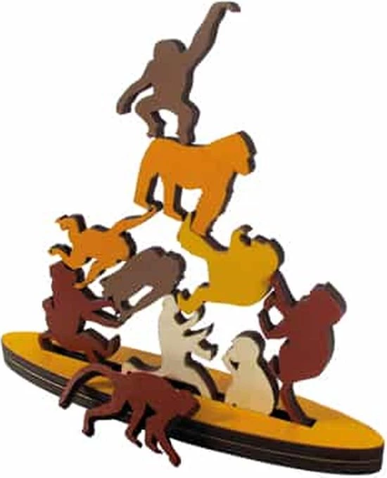 Om de beurt een stuk plaatsen. De laatste die een stuk plaatst zonder de stapel omver te gooien wint.