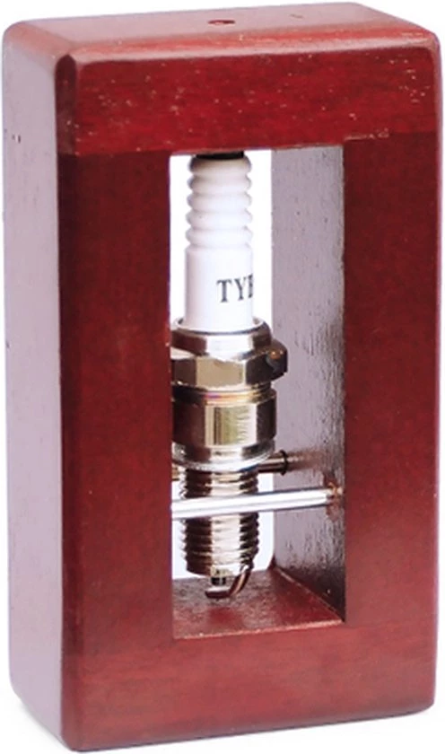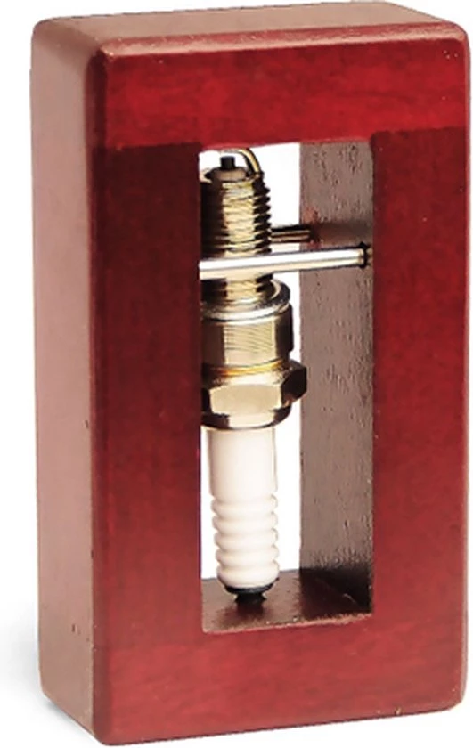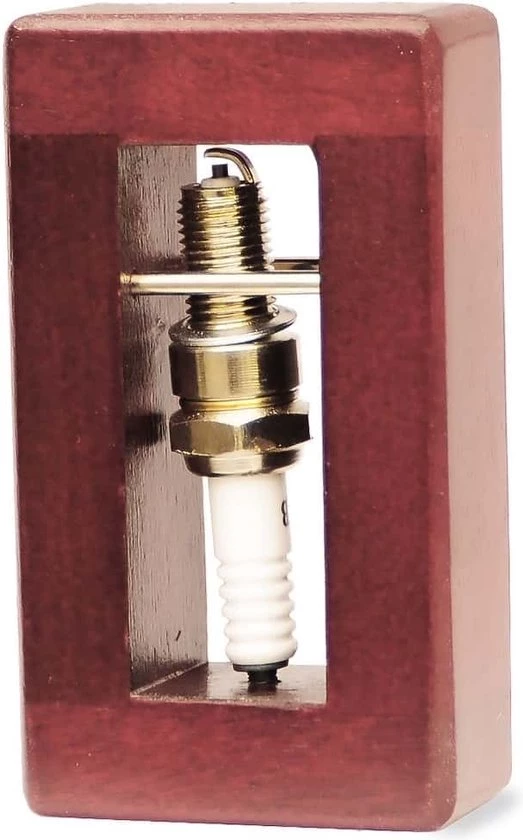Een bougie in een houten frame. Het doel is om de gevangen bougie uit het houten frame te bevrijden. Ziet er simpel uit, maar vergt zeker een out of the box denkwijze. Ideaal cadeau voor automonteurs en je broer die altijd start problemen had met zijn brommertje door zijn vuile bougie.