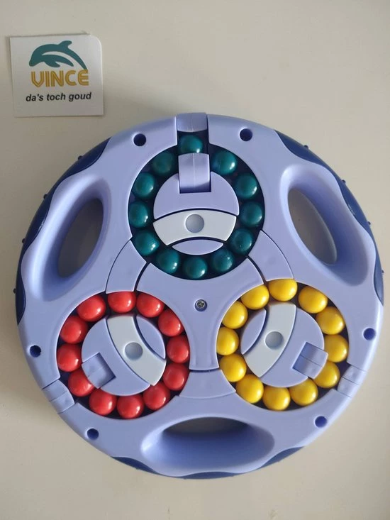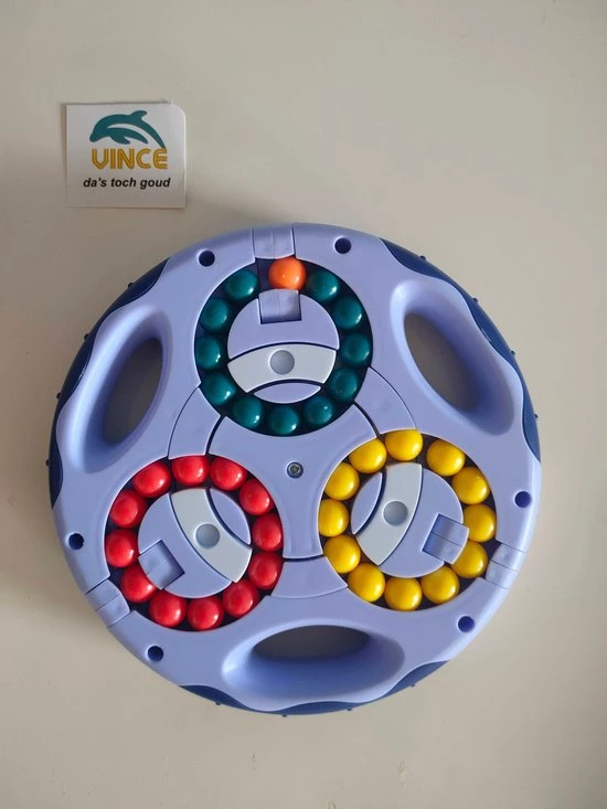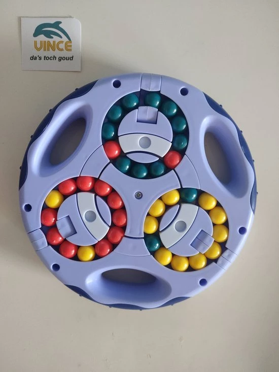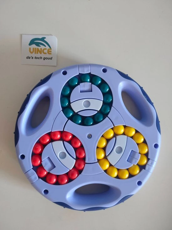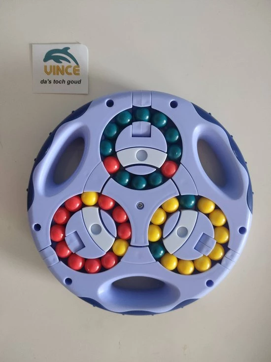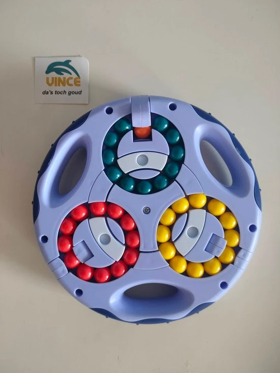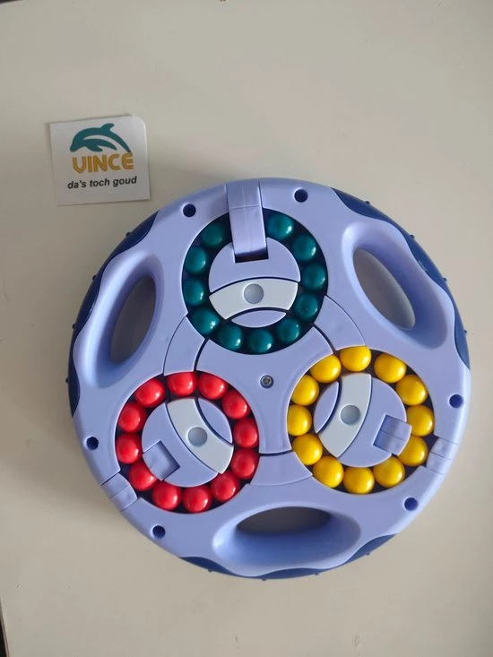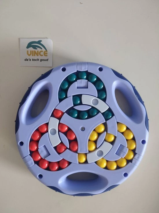 als dat nog niet moeilijk genoeg is kunnen de 3 kleuren aan biede kanten ook door elkaar gemixed worden door de 3 draaibare elementen aan de buitenzijde.