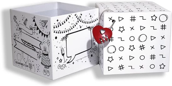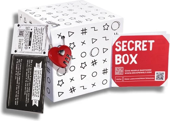 Escapewelt heeft een apparaat gecre?erd dat van een verpakking een verslavend puzzelspel maakt en een onvergetelijke unboxing ervaring. De spanning van het geven en krijgen van cadeaus willen we allemaal graag meemaken, dus waarom maken we dit proces niet nog leuker? Daag je vriend(in) uit. Leg het cadeau in de Secret Box, sluit het met het geheime slot en geef het aan je vriend(in). Kijk hoe hij/zij het probeert te openen. Gemiddeld duurt het 15-20 minuten om alle puzzels op te lossen en de Secret Box te openen. Alle producten zijn ontworpen voor 12+. Als je je kind echter helpt en samen met hem puzzels oplost, zal dit je gezin sterk verenigen en je kind in staat stellen moeilijke problemen als een team op te lossen!