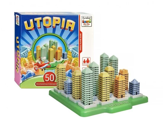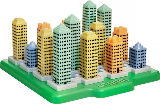 Zet je figuurlijke bouwhelm op en begin met bouwen op deze bouwplaats in de stad Utopia. Je gaat een 3D model van elke landschap nabouwen. Bouw de zestien wolkenkrabbers op de juiste plaats.