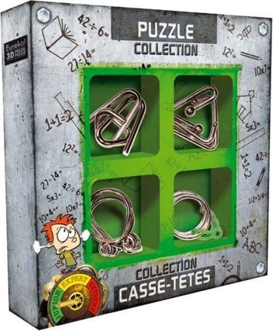 Een selectie van 4 metalen puzzels die qua moeilijkheidsgraad ideaal zijn voor kinderen maar tegelijkertijd fascinerend blijven voor volwassenen.