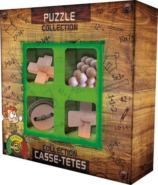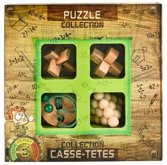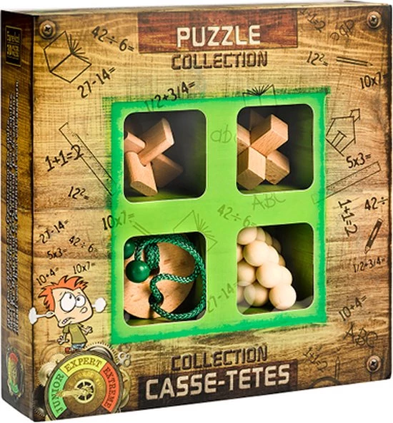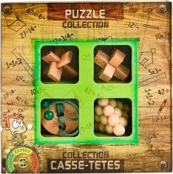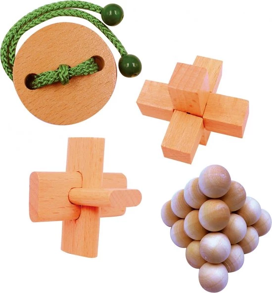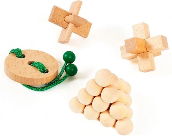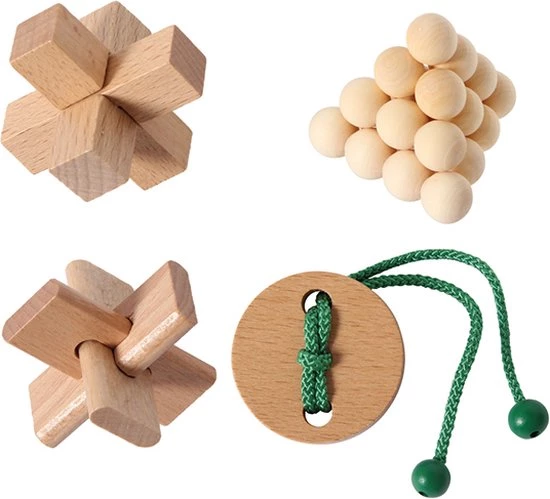 Een selectie van 4 houten puzzels die qua moeilijkheidsgraad ideaal zijn voor kinderen maar tegelijkertijd fascinerend blijven voor volwassenen.