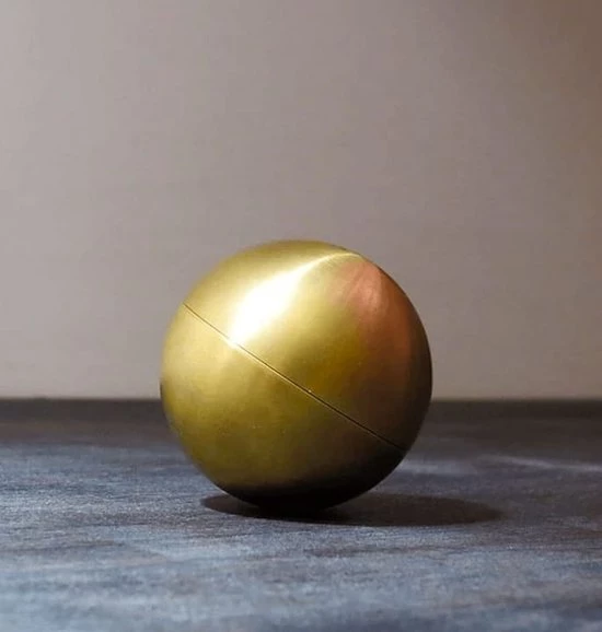 Open de bol.. dit is geen eenvoudige, maar eerder een intrigerende en uitdagende breinbreker. Vernoemd naar een van Jupiter?s manen, werd de Titan-bol breinbreker ontworpen en vervaardigd in Londen door Felix Ure, en vervaardigd uit massief messing. Titan is verpakt in een doos van hoge kwaliteit met deksel en een kleine mooie stoffen tas met lanyard.