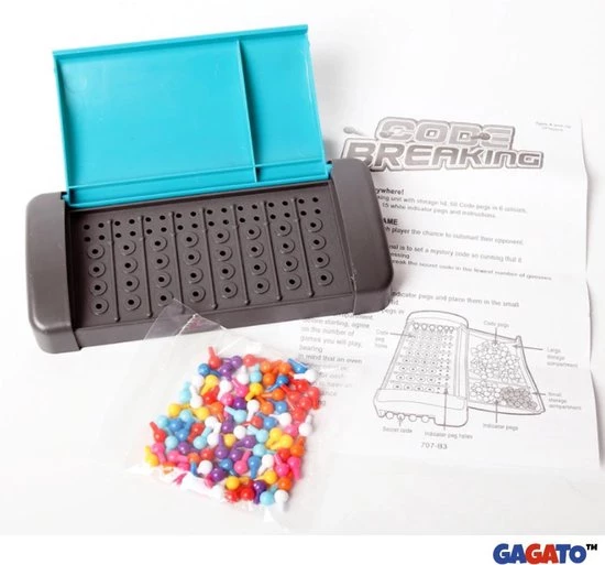Het Code Breaking Spel is een educatief mastermind spel waarbij je snel moet denken. Het spel is gemaakt in een handig pocket-size formaat. Zo neem je het overal mee naartoe. Je kunt het bijvoorbeeld achter in de auto spelen of aan de keukentafel met vrienden en familie.
