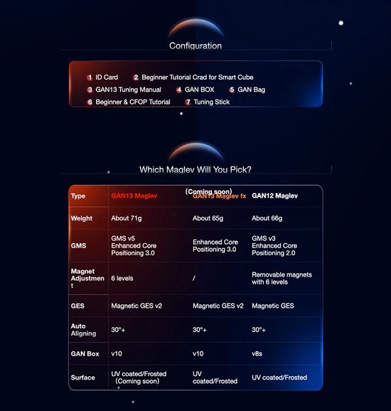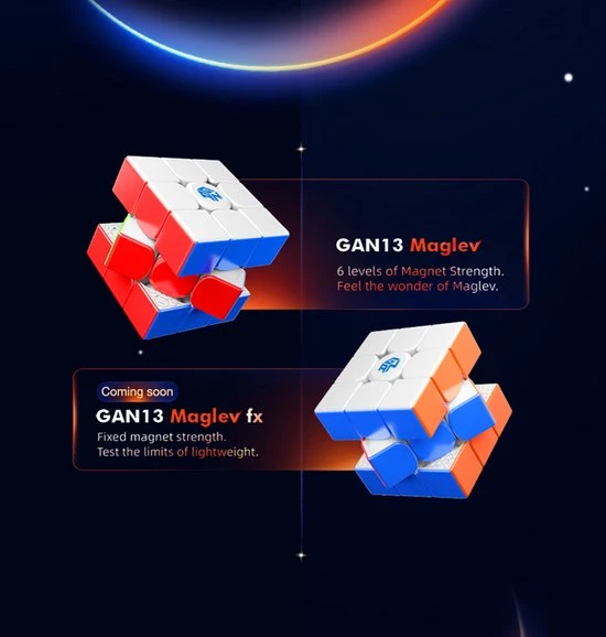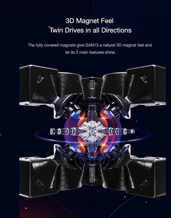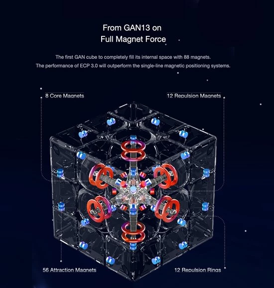 GAN 13 3×3 Magnetic (MagLev) is de toekomst van speedcubing. De 13 biedt tal van nieuwe functies en verbeteringen die je oplossingservaring zeker zullen verbeteren! Zoals de magnetische afstotingstechnologie, de UV-gecoate buitenkant (hoogglans, verbeterde grip), verbeterde kernpositionering 3.0 auto-uitlijningstechnologie, er zijn geen veren nodig en dit alles zorgt voor een sneller draaigevoel.