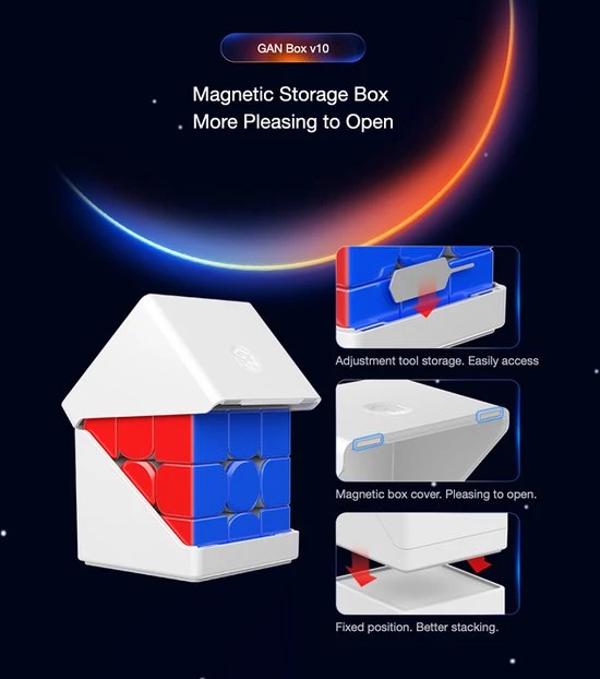 Inbegrepen zijn de: GAN-box, Gan Zakje, CFOP-zelfstudiegids en een Aanpassingstool.