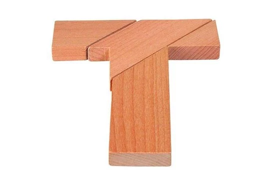 Probeer met dit leerzame spel alle houten stukjes zo te vormen, dat er een t ontstaat. De puzzel wordt geleverd in een katoenen zakje en is 4-delig.