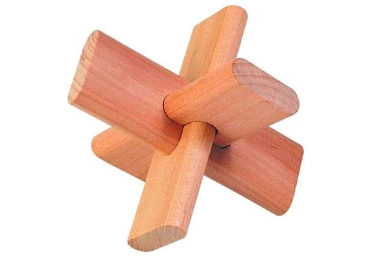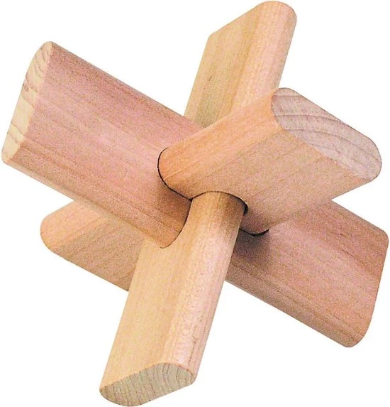 Probeer met dit leerzame spel alle houten stukjes zo te vormen, dat er een kruis ontstaat. De puzzel wordt geleverd in een katoenen zakje en is 3-delig.