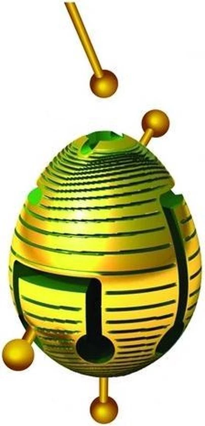 Het ei, de schil, de route, één ingang, één uitgang, geen onnodige zijpaden, geen doodlopende wegen. Op het eerste gezicht lijkt het eenvoudig, maar zoals vaker is het niet zo slim om op die eerste indruk af te gaan. Wel slim is het alles te vergeten wat je ooit hebt geleerd, je fantasie ruim baan te geven en elke mogelijkheid uit te proberen. Dat is bij de Smart Egg de sleutel tot succes. Bij de Smart Egg, een verslavende breinbreker die al diverse internationale prijzen won, is het de bedoeling om met een staafje het kleurrijke ei te doorboren. Probeer daarbij niet te veel na te denken, maar laat op gevoel je handen de uitweg vinden in het labyrint. Je kunt Smart Egg op diverse manieren spelen. Probeer het eerst op de eenvoudigste manier en vervolgens met gesloten ogen, achter je rug of met één hand. Je kunt Smart Egg alleen spelen, tegen vrienden of met een tijdslimiet. Het spel is eenvoudig te leren, maar de route door het labyrint is moeilijk te onthouden. Er zijn 6 verschillende Smart Eggs verkrijgbaar. Prachtige gadgets om te zien en te verzamelen.Probeer niet te veel na te denken bij de Smart Egg Hive (level 4). Laat je handen de groene golven volgen en je vindt de oplossing.