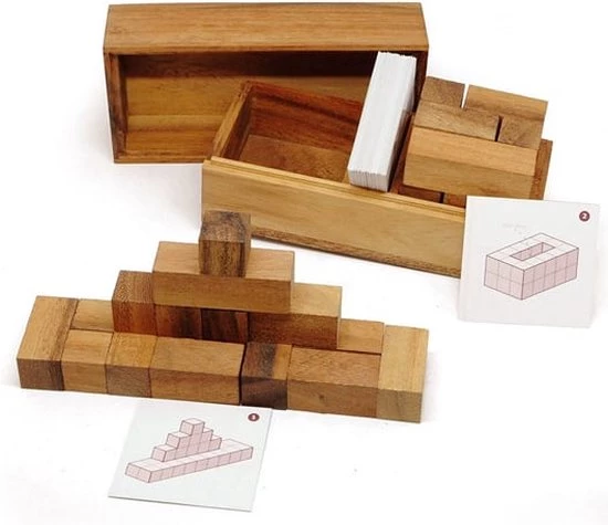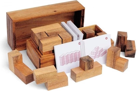 Een breinbreker voor 2 spelers: Wie vormt als eerste de kubus en 50 andere figuren met de kaarten die zijn inbegrepen? In de doos zitten 2 complete kubussen van Tetris 3D Soma en 50 kaarten met verschillende vormen om te maken Wie als eerste de getoonde vorm weet te maken, zal winnen! Op de voor- en achterkant van de kaart staat ??de vorm en de oplossing.