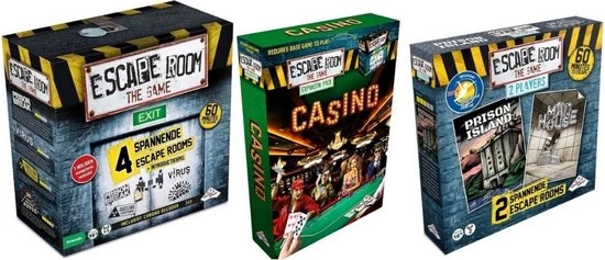 Uitbreidingsset voor Escape Room The Game. De laatste jaren reisde je met je team van casino naar casino, van Las Vegas naar Monaco en van Atlantic City naar Singapore. Er is geen vuiltje aan de lucht, tot je in je groezelige hotelkamer een verontrustend telefoontje krijgt. Carolyn Castle heeft de eerste regel van jullie systeem gebroken: word nooit betrapt! Alsof dat nog niet erg genoeg is, blijkt de familie Trapani eigenaar van het casino in kwestie te zijn. De bekendste en gevreesde maffiafamilie is razend. Dan wordt er plots op je hotelkamer een vinger met Carolyns ring erom bezorgd. Een beangstigende manier om duidelijk te maken dat het menens is…