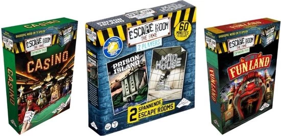 Uitbreidingsset voor Escape Room The Game. De laatste jaren reisde je met je team van casino naar casino, van Las Vegas naar Monaco en van Atlantic City naar Singapore. Er is geen vuiltje aan de lucht, tot je in je groezelige hotelkamer een verontrustend telefoontje krijgt. Carolyn Castle heeft de eerste regel van jullie systeem gebroken: word nooit betrapt! Alsof dat nog niet erg genoeg is, blijkt de familie Trapani eigenaar van het casino in kwestie te zijn. De bekendste en gevreesde maffiafamilie is razend. Dan wordt er plots op je hotelkamer een vinger met Carolyns ring erom bezorgd. Een beangstigende manier om duidelijk te maken dat het menens is…