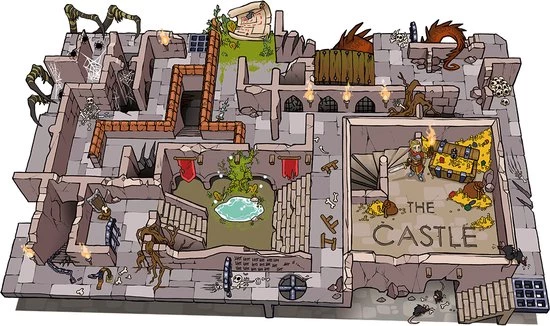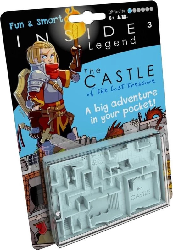 ?Het KASTEEL van de verloren schat? het is een avontuur met duizend gevaren in een middeleeuws universum. Je moet in het puin van een verwoest kasteel zoeken naar een kist vol gouden munten. Je moet bij de verloren schat komen, maar vooral om uit het kasteel te komen. Een minimaal en puur doolhof-avonturenspel. Het Legend-assortiment geeft je opwindende momenten en prikkelt je fantasie. Toegankelijk voor alle avontuurlijke spelers. Ondergronds gevuld met vallen en geheime doorgangen.