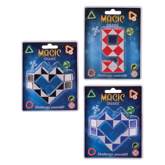 Johntoy puzzel Magische Slang Wie kent de magische kubus niet? Een spel dat door de jaren heen nog steeds hip blijft. Deze variant in de vorm van een slang geeft jou een nieuwe uitdaging. Lukt het jou om de gekleurde vlakken weer terug te draaien naar de vorm van de slang? Specificaties: Kleur: zwart, wit Geslacht: junior Materiaal: kunststof Afmetingen: 22 x 1,5 x 1 cm (L x B x H) Leeftijd: vanaf 4 jaar