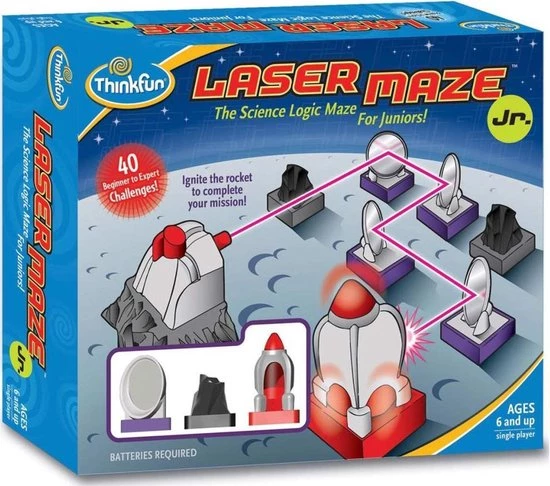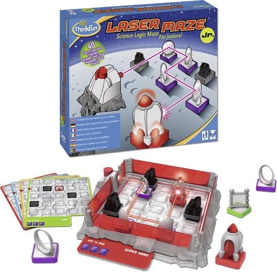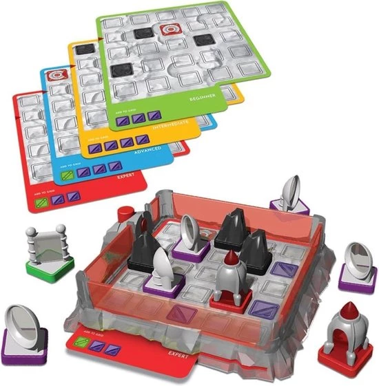 | Verpakkingsinhoud | Game, Grid, with, Laser, 40, Challenges, from, Easy, to, Super, Hard, Instruction, Manual, with, Solutions, 11, Game, Tokens, (2, Rocket, Targets, 3, Space, Rock, Blockers, 5, Satellite, Mirrors, and, 1, Beam, Splitter) |