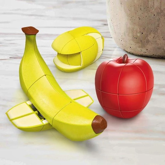 De fruit cube set bestaat uit 3 fruitige kubussen met ieder zijn eigen moeilijkheidsgraad. De appel- en citroenpuzzel zijn 3 x 3 puzzels en de banaan is er een van 2 x 2 x 3. Op zoek naar een leuke ?n lekkere puzzelkubus? Dan is de Fruit Cube Series Rubiks cube set iets voor jou!