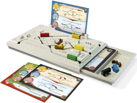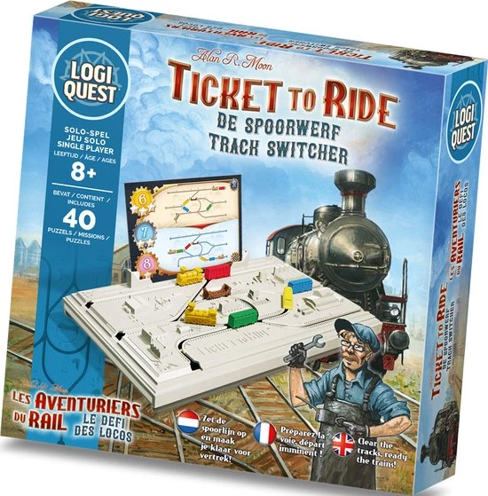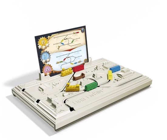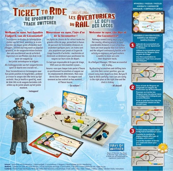 Welkom in 1900, het Gouden Tijdperk van de Locomotief! Treinsporen verbinden de belangrijkste steden van het land en als leidinggevende van de Ticket to Ride spoorwerf probeer jij alle locomotieven en treinwagons op de juiste posities te krijgen. Maar de klok tikt en de wagons bevinden zich zelden op de juiste plaats op het juiste moment…