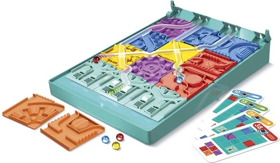 - 8 knikkers (2 blauwe, 2 rode, 2 groen, 2 gele)