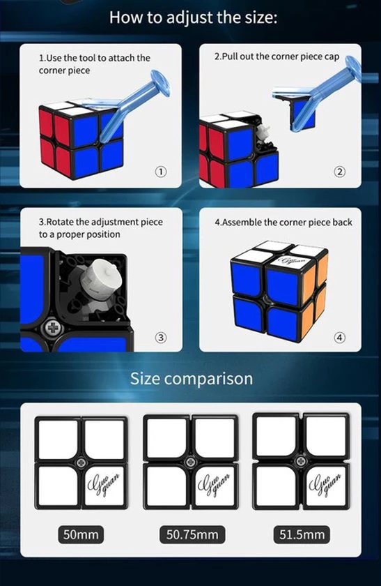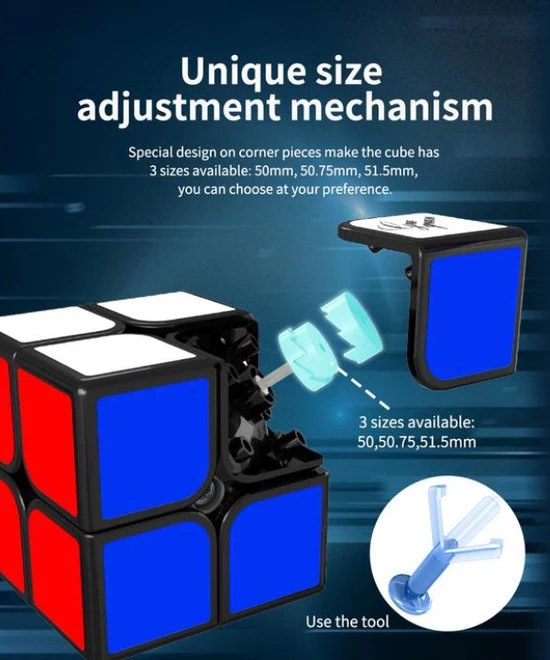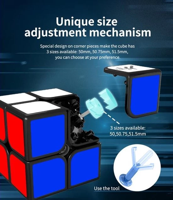 Je kan eenvoudig kiezen tussen 3 maten: 50 mm, 50,75 mm en 51,5 mm door de hoekdop te verwijderen en aan het afstelwiel te draaien! De in de fabriek gemonteerde magneten zijn van gemiddelde sterkte. De XingHen TSM is echt een primeur in zijn soort!