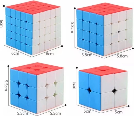 Wil je snel nieuwe records halen? Dan past deze set bij jou! Deze set bestaat uit 4 verschillende kubussen (2×2, 3×3, 4×4 en 5×5). In de kubussen zijn holtes aangebraht, hierdoor wordt de oppervlaktewrijving geminimaliseerd. Met deze kubussen kun je snel en makkelijk draaien, waardoor je snel nieuwe records kunt halen.