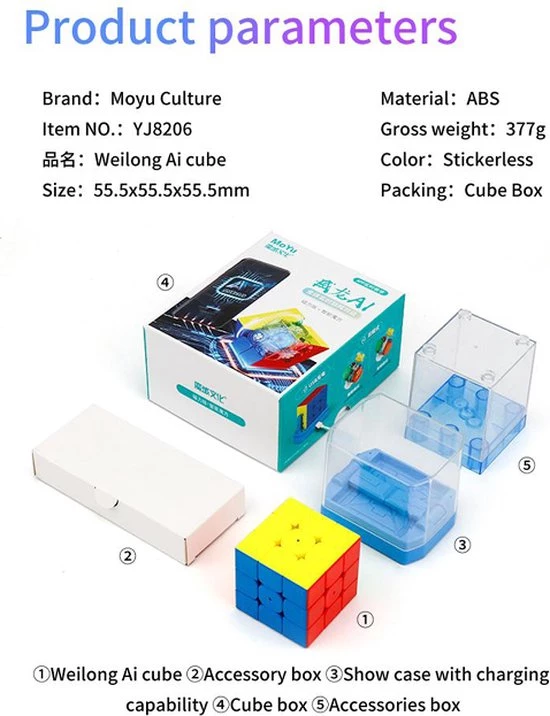 De MoYu WeiLong AI Bluetooth 3?3 is MoYu?s eerste smart cube-release! Wat de WeiLong AI meteen onderscheidt van andere smartcubes, is de kubus zelf. De kubus is eigenlijk een WR M 2020 met een gyroscoop, wat betekent dat je de kubus zonder enige beperking kunt versnellen. De gratis downloadbare app bevat veel functies die je niet alleen helpt je tijden te verbeteren, maar waar je ook veel plezier van zal hebben.