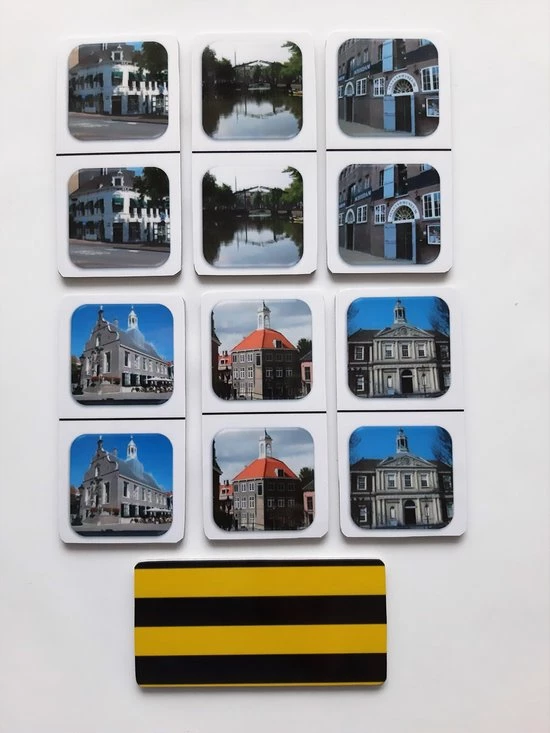 FotoDomino Schiedam is speciaal gemaakt voor ouderen en voor mensen met een hersenaandoening zoals bijvoorbeeld dementie. Het spel bestaan uit 28 grote kaarten van 6-12cm, aan beide zijdes voorzien van een lamineerlaag zodat de kaarten afneembaar zijn. Ze zijn ongeveer 3 mm dik, zodat ook gespeeld kan worden met mensen waarbij de fijne motoriek niet meer is wat het zou moeten zijn.