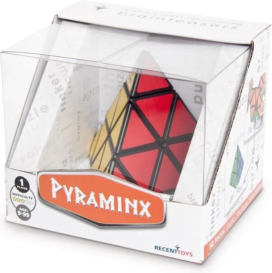 Deze Pyraminx van Recent Toys lijkt erg op de bekende puzzelkubus, maar hij heeft een twist! Door de vorm heeft hij een extra draai-as, waardoor een andere puzzelstrategie nodig is. Laat je brein eens flink kraken met deze puzzel!
