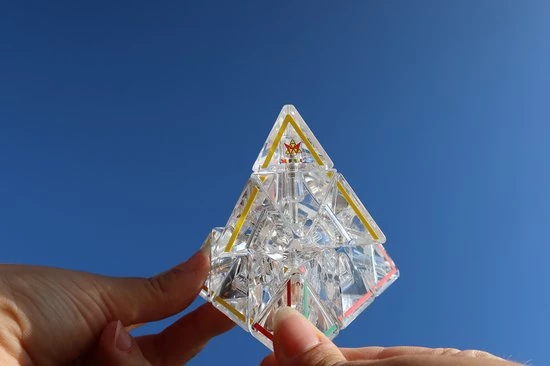 Meer dan 50 jaar geleden is de Pyraminx door Uwe Meffert ontworpen en uitgegeven. Recent Toys heeft werelwijd de exclusieve rechten om dit te verkopen. Als cadeautje en extraatje hebben wij dit product nu in prachtig crystal gemaakt! Geniet ervan!