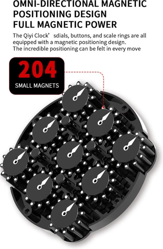 QiYi heeft hun eerste versie van de klokpuzzel geperfectioneerd. Deze klok is van hoge kwaliteit en dit wordt snel duidelijk bij het gebruik van de puzzel. Met in totaal 208 magneten (204 kleine, 4 grote) is het uurwerk zeer nauwkeurig en zijn alle wijzerplaten, knoppen en ringen voorzien van magneten.