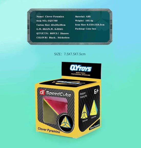 De QiYi Clover Pyraminx heeft de vorm van een traditionele pyraminx, maar daar houden de overeenkomsten op. Dit is een baanbrekende kubus ! Bovendien beweegt deze kubus door elkaar en verandert de vorm, wat leidt tot interessante, verbluffende combinaties en bewegingen.