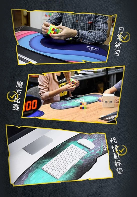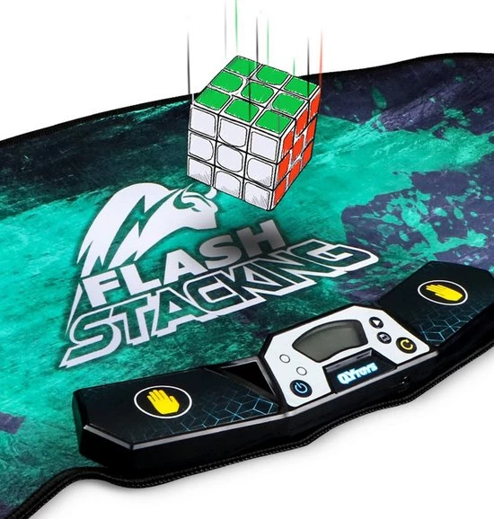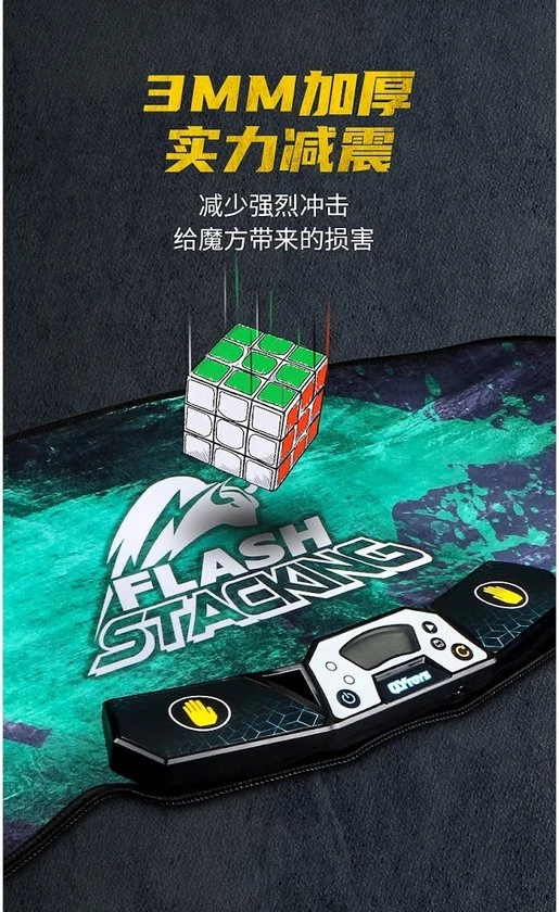QiYi Flash Stacks cups Mat is een nieuwe, zeer aantrekkelijke kubus mat, ontworpen om uw kubussen te beschermen tegen beschadiging tijdens high-speed training of tijdens speedcube wedstrijden. Door zijn grote formaat is het ook een goede bureaumat of vervangende muismat. Bij deze mat zijn timer-bevestigingsclips meegeleverd, waardoor het ook comfortabel is om de timer eraan te bevestigen.
