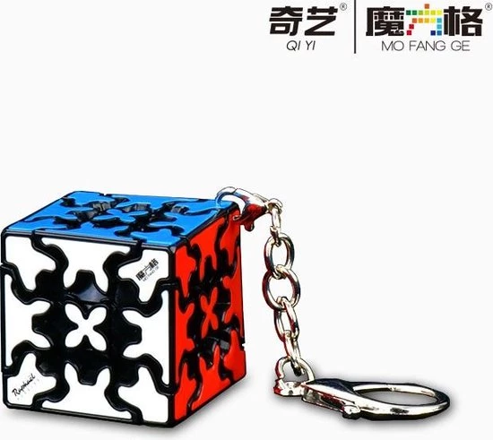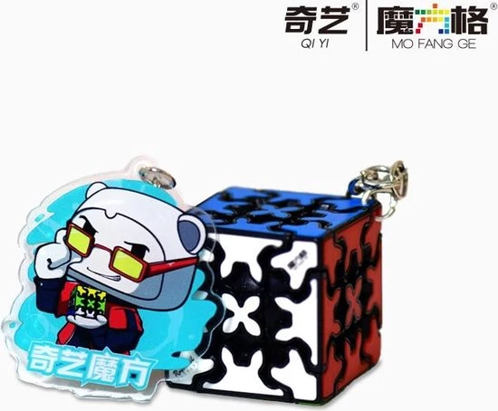 De Gear Mini sleutelhanger 3×3 is een sleutelhangerversie van QiYi’s 3×3 Gear Cube. Deze kubus draait meteen goed uit de doos. Het wordt ook geleverd met een andere sleutelhanger met de afbeelding van GeGe, de mascotte van QiYi.