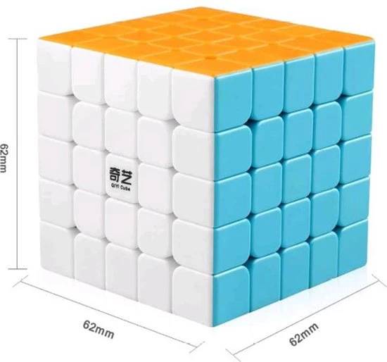 De QiYi QiZheng S2 5?5 past in de lijn van goede, mooie en goedkope QiYi-speedcubes. Deze niet-magnetische 5?5 is geweldig voor een beginnende speedpuber om een 5?5 te leren oplossen en om aan de snelheid te werken. Dit is een stickerloze versie en heeft de kleurtinten van de QiYi Warrior. De QiYi QiZheng S2 draait erg soepel en is goed afgesteld.