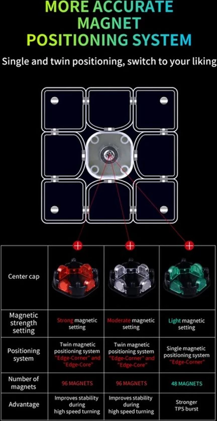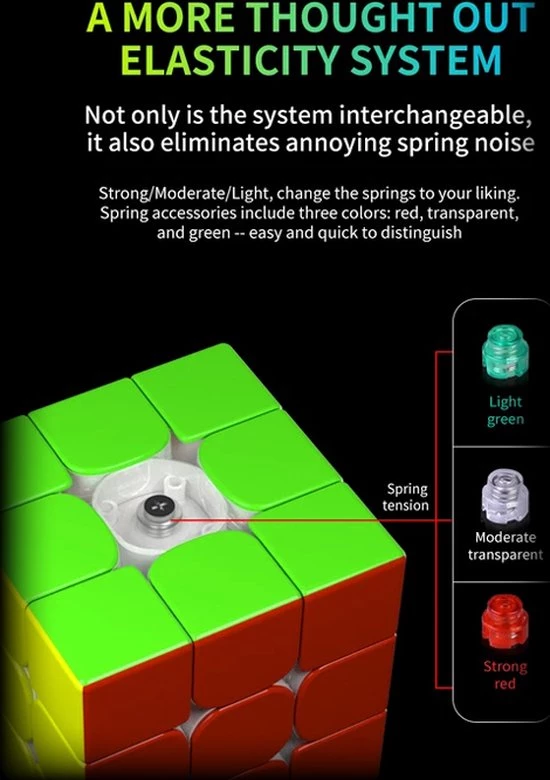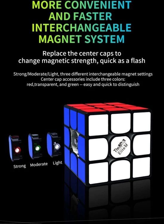Na lang wachten is hij er eindelijk, de Valk 3 Elite M. Het paradepaardje van de beroemde Valk serie van QiYi Mofange. Deze kubus heeft een gloednieuw magnetisch systeem met drie verschillende krachtniveaus. De Valk Elite 3 M kan worden gewijzigd van magneetsterkte d.m.v de midden doppen te wisselen. Zodat iedereen zijn perfecte gevoel kan vinden. Groen = zwak, Wit = matig en Rood = sterk.