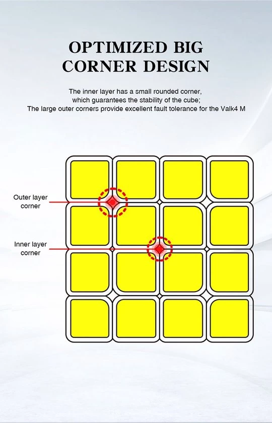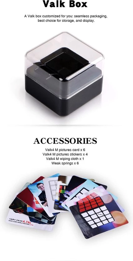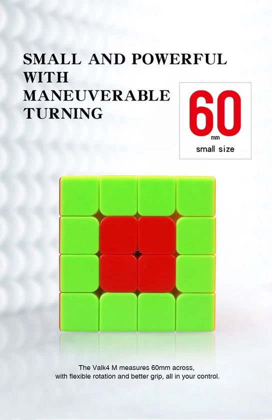 Net als alle andere cubes van QiYi valk is dit een speedcube van topkwaliteit. Door de afmeting van 60 mm houdt de Valk 4 M zeer makkelijk vast. Als je de Valk 4 M 4?4 rustig of snel draait voelt de zeer stabiel en solide aan. Uiteraard is ook de Valk 4 M goedgekeurd door Mats.