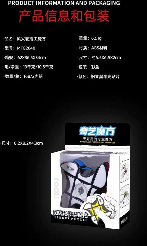 De QiYi 1x3x3 Windmill Spinner is een nieuwe kijk op de spinner. Deze versie is een volledig functionele 1x3x3 kubus met een unieke vorm. De randen en hoeken zijn aangepast om eruit te zien als een windmolen! De kubus heeft ook kapjes/plaatjes in plaats van stickers om de duurzaamheid te verbeteren.