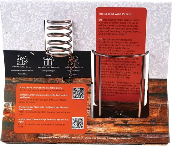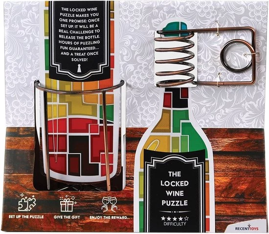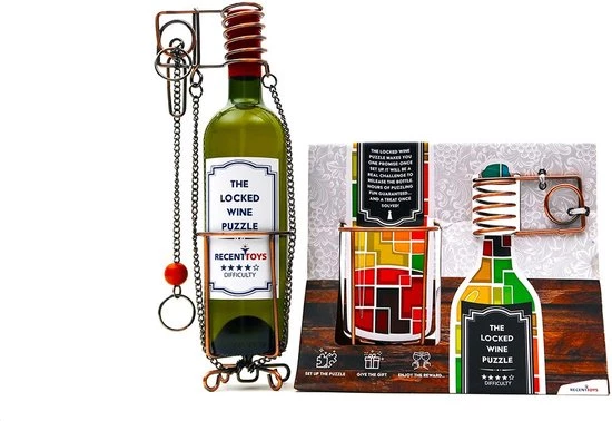 De Locked Wine Puzzle maakt je ??n belofte: eenmaal opgezet, wordt het een echte uitdaging om de fles los te laten en je dorst te lessen. Urenlang puzzelplezier gegarandeerd … en een traktatie als het eenmaal is opgelost!