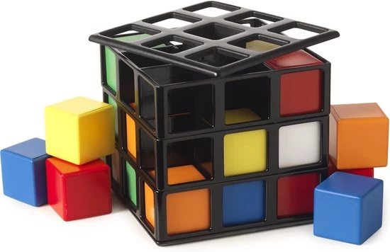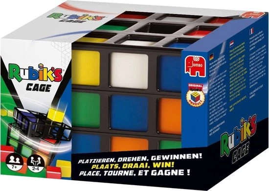 Draaien, Wenden, Keren en Winnen! Rubik’s Cage is voor 2-4 spelers. De speler die als eerste aan een zijde van de Rubik’s Cage 3 cubies van dezelfde kleur op een rij heeft – verticaal, horizontaal of diagonaal – is de winnaar!
