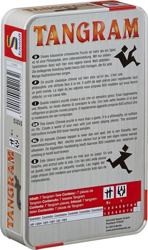 Leuke puzzelvariant op het Big Brain Academy spel! Wie heeft de meeste hersens? Denk je fit! Deze tangram puzzel bestaat uit 7 speelstukken die binnen de gekozen tijd in een bepaalde vorm gelegd moeten worden. Inclusief boekje met uitdagingen en zandloper.