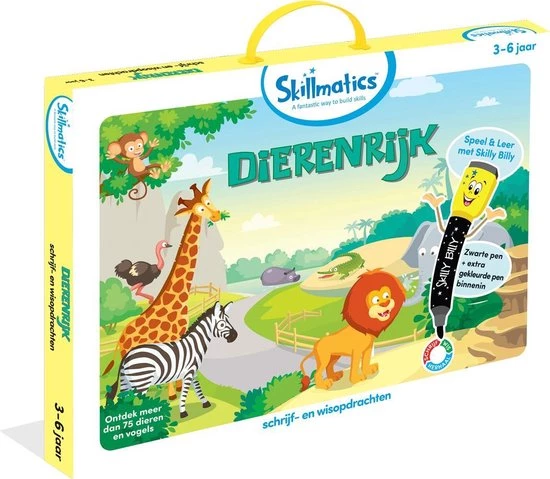 De dierenwereld boeit alle leeftijden. Geen enkel ander onderwerp wekt zoveel opwinding en nieuwsgierigheid op. Welke dieren zijn ‘s nachts wakker? Wat eten zij? Waar wonen zij? Hoe heten hun baby’s? Welke geluiden maken ze? De lijst is eindeloos! We beantwoorden al deze vragen en nog veel meer met Skillmatics Dierenrijk. De leuke activiteiten zorgen ervoor dat uw kind kennis vergaart over meer dan 75 geweldige dieren!