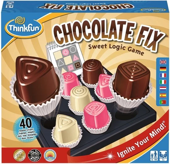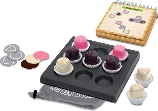 Een beetje zoals bij Sudoku; bestudeer al de hints op de kaart en leg de 9 chocolaatjes op de juiste plek. Een zoet logisch denkspel met 40 uitdagingen, van beginner tot export.