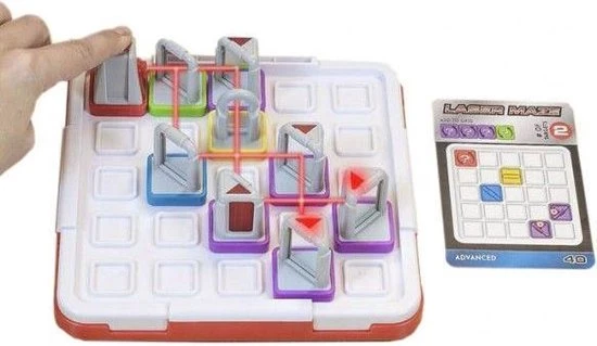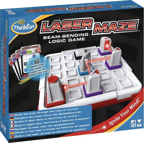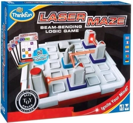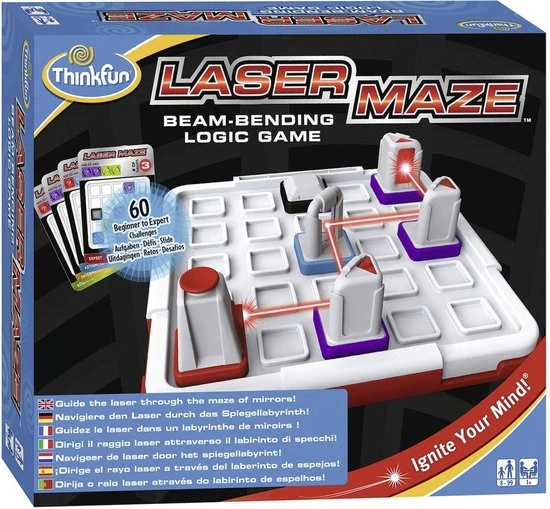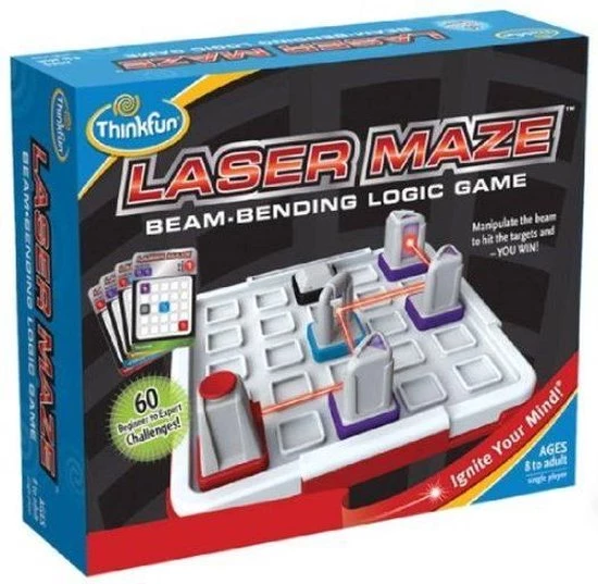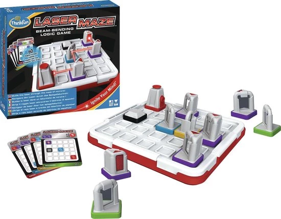 Navigeer de laser door het spiegellabyrint! Bij Laser Maze? is het de bedoeling de verschillende speelstukken zo op het spelbord te plaatsen en neer te zetten, dat de laserstraal de spiegel treft en het doel rood laat oplichten. Dat klinkt een beetje magisch, maar eigenlijk is het pure wetenschap en heb je een gezonde dosis verstand nodig, om de 60 opdrachtkaarten in vier verschillende spelniveaus te overwinnen. Laser Maze? laat niet alleen de doelstenen oplichten, maar laat ook de hersens van de speler kraken en geeft daarbij veel plezier!